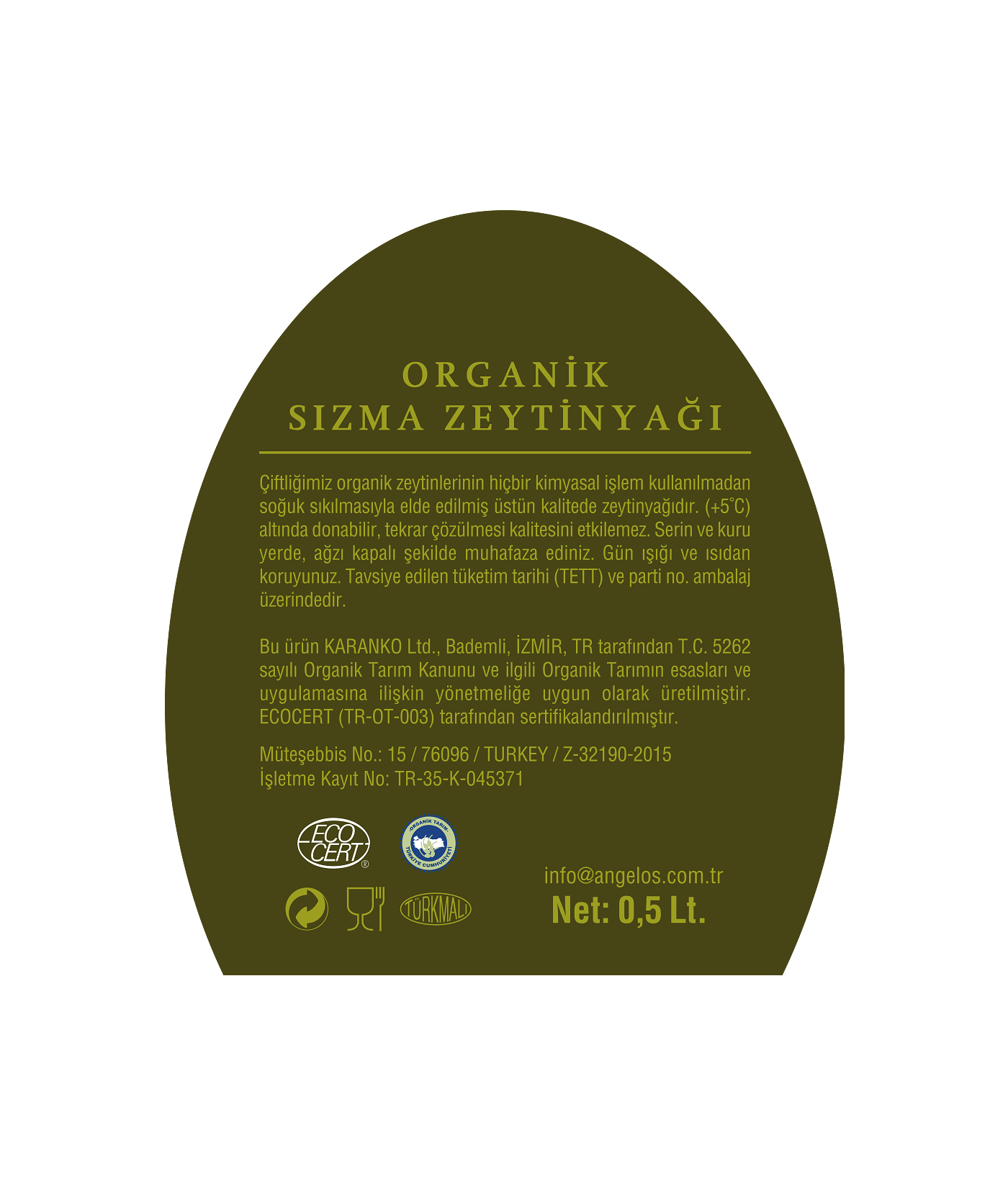 Organik Ekstra Sızma Zeytinyağı (0.5 Lt.) Etiket